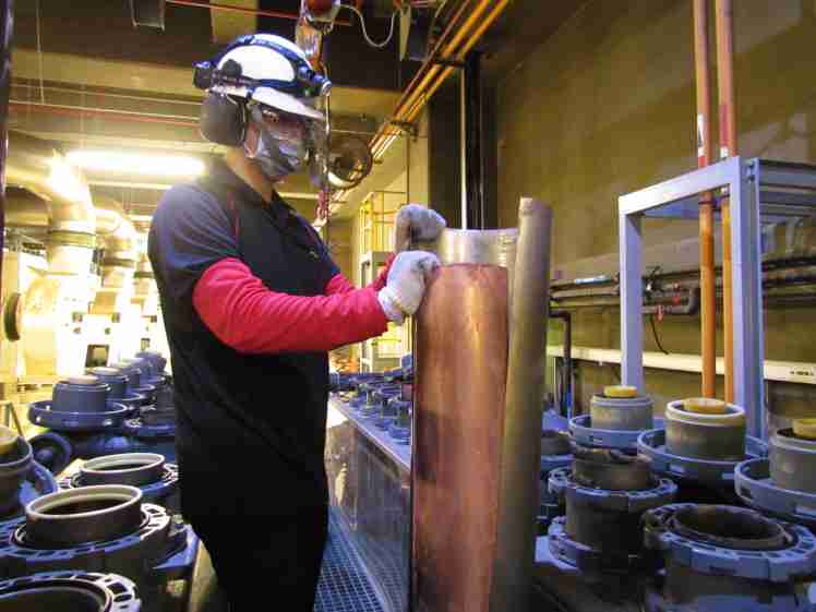 菠菜论坛将废弃物转化成有效的工业或民生原物料,,图为废铜液淬炼后再制成纯度极高的铜管
