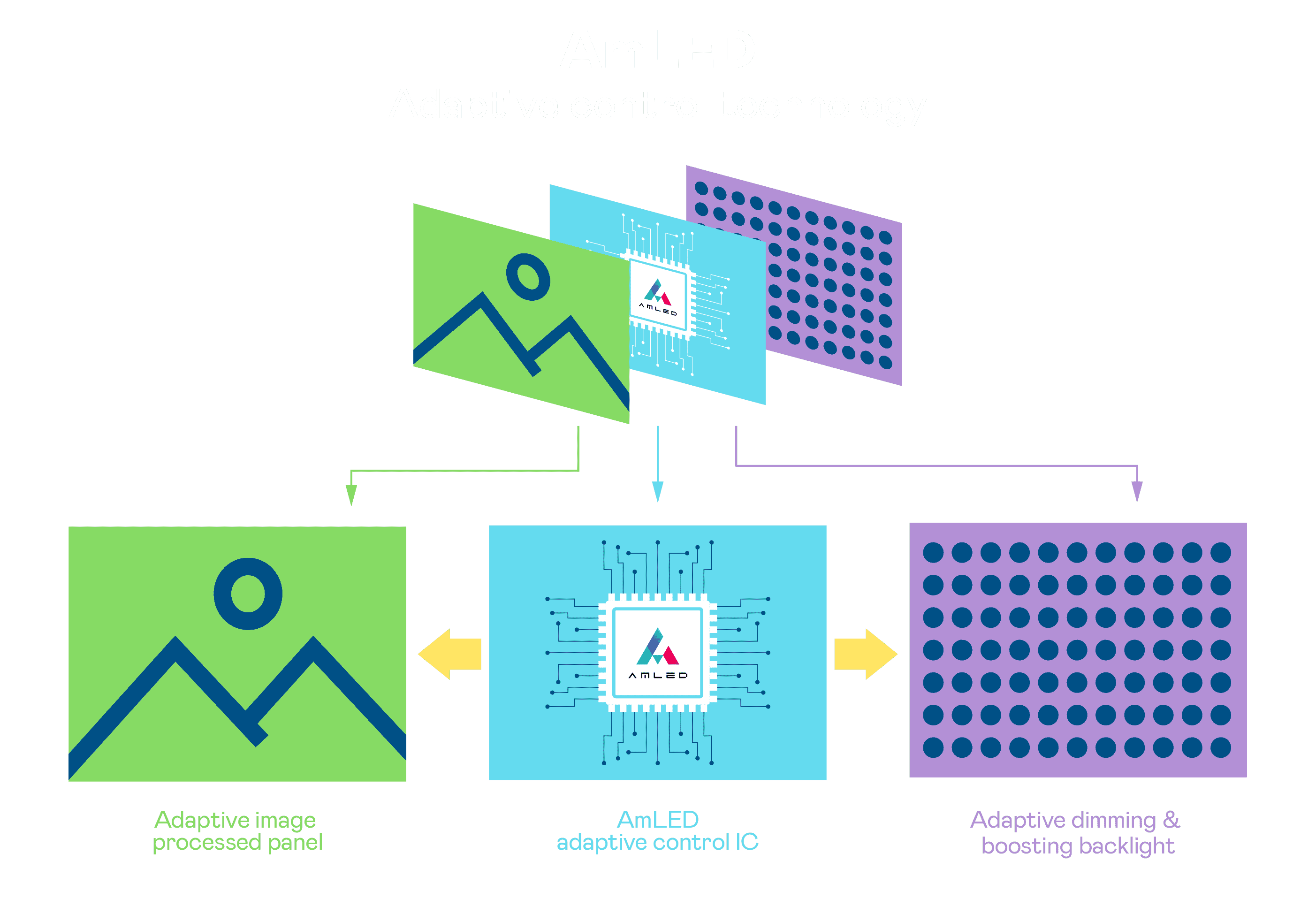 透过动态影像处理和 Mini LED 背光模组的动态对比及峰值亮度调变,,,AmLED 显示技术精准细致的局部调光效果达到超过 1,000 nits 的超高亮度表现,,,,亮部更明亮、、、、暗处更深邃,,,呈现真实黑色中的亮度以及平滑灰阶,,打造出具层次分明的精致光影细节。。