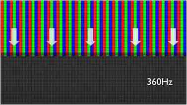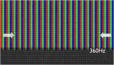 传统液晶驱动是从左到右单向进行,,,在画面更新速度愈来越愈快的情况下,,位于驱动线路末端的右下角区域,,,,画素的闸极来不及在短时间内获得足够电压,,无法显示出正确的颜色资讯。。。。 |